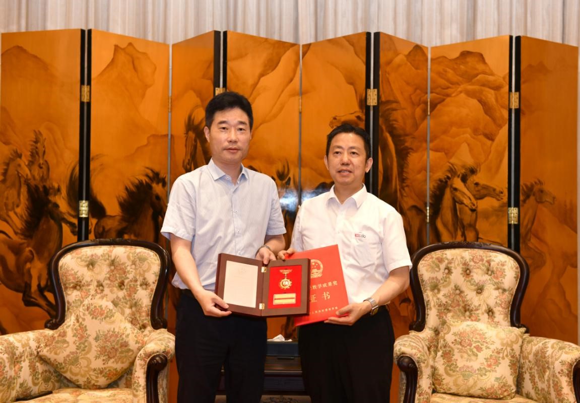 The HOdo Group's industry-university-research cooperation bears fruit again. The "Exploration and Practice of Modern Apprenticeship Education for Business Professionals Based on Vocational Education Group" project hosted by Zhou Haijiang, Chairman and CEO of HOdo Group as the main participant and Professor Yang Jianxin, Secretary of the Party Committee of Wuxi Vocational College of Commerce, won the first prize of national vocational education national teaching achievement, create the best achievement in school history. On July 11, Professor Yang Jianxin awarded Zhou Haijiang the award certificate to commend Zhou Haijiang for his outstanding contributions to this teaching achievement.