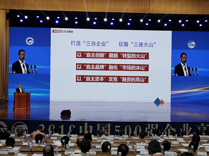 中國民間商會副會長、紅豆集團董事局主席兼CEO周海江受邀擔任本次大會聯合主席,并在企業(yè)家主題論壇就中國企業(yè)如何“做好自己事 當好自己人”為題,從“打造三自企業(yè),做好自己事”及“當好新時代自己人”兩個方面出發(fā),同與會者探討在當前復雜多變的全球經濟環(huán)境下,大企業(yè)的發(fā)展之道。 一方面要打造三自企業(yè),做好自己事。周海江表示,企業(yè)當前亟需征服的“轉型的火山、市場的冰山、融資的高山”這“三座大山”,既需要各級黨和政府營造更好的發(fā)展環(huán)境,更需要廣大企業(yè)自身能夠主動應對、積極作為,做好自己的事,著力打造“三自企業(yè)”即“自主創(chuàng)新、自主品牌、自主資本”。