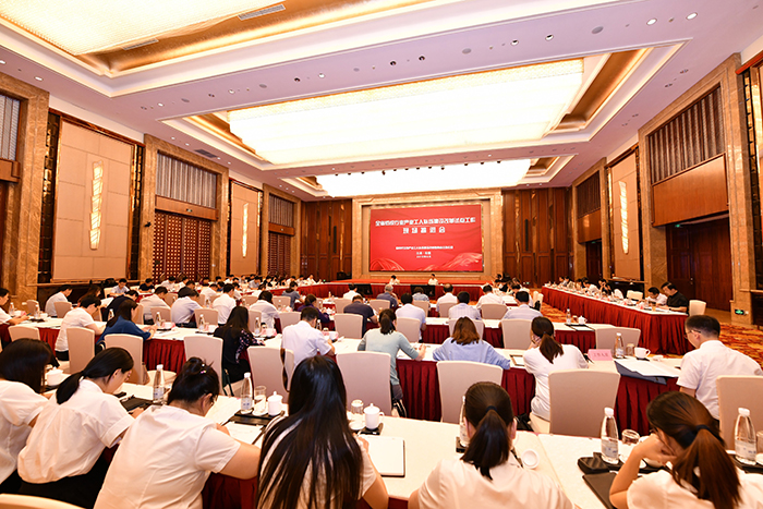 9月19日,全省紡織行業(yè)產(chǎn)業(yè)工人隊伍建設(shè)改革試點工作現(xiàn)場推進會,全省非公企業(yè)產(chǎn)業(yè)工人隊伍建設(shè)改革試點工作現(xiàn)場推進會在紅豆集團舉行。省產(chǎn)業(yè)工人隊伍建設(shè)改革聯(lián)席會議成員單位、各設(shè)區(qū)市總工會黨組書記等180多人參會。省總工會黨組書記、副主席,新時代江蘇產(chǎn)業(yè)工人隊伍建設(shè)改革聯(lián)席會議辦公室主任朱勁松出席會議并講話。紅豆集團黨委書記、董事局主席兼CEO周海江作為省產(chǎn)業(yè)工人改革試點企業(yè)代表作了典型經(jīng)驗匯報,紅豆職業(yè)裝公司襯衫廠技術(shù)科科長、高級版郭軍偉作為優(yōu)秀產(chǎn)業(yè)工人代表分享了成長經(jīng)歷。
