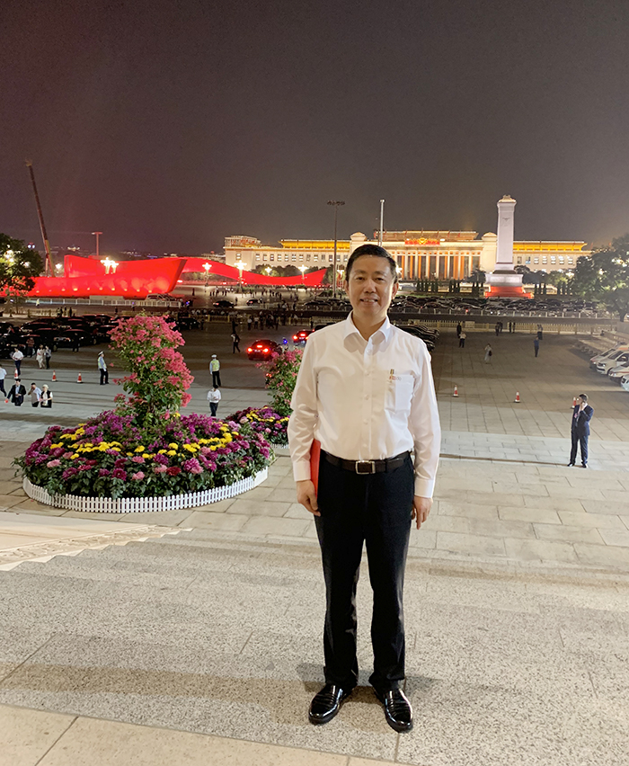 周海江介紹說,在新中國成立60周年的時候,他就作為中國鄉(xiāng)鎮(zhèn)企業(yè)的唯一代表登上了“農(nóng)業(yè)成就”彩車上,巡游了天安門廣場。今年,他再次受邀出席新中國成立70周年系列活動,并登上天安門觀禮臺觀禮,這不僅是紅豆的榮耀,更是所有民營企業(yè)的榮耀,因為具有六十多年歷史的紅豆集團,正是千千萬萬民營企業(yè)發(fā)展的一個縮影。