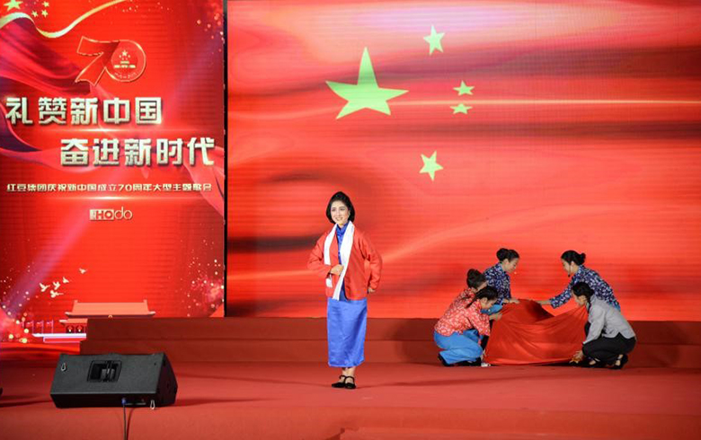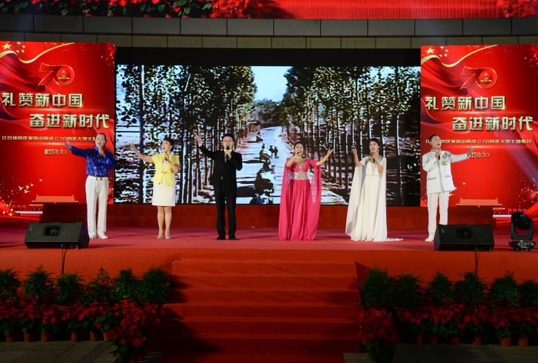 “我愛你中國(guó),我愛你中國(guó),我要把美好的青春獻(xiàn)給你,我的母親,我的祖國(guó)……”9月29日晚,由紅豆集團(tuán)主辦的“禮贊新中國(guó) 奮進(jìn)新時(shí)代”——慶祝新中國(guó)成立70周年大型主題歌會(huì)在東港紅豆萬(wàn)花城圓滿舉行。由紅豆集團(tuán)“先進(jìn)黨員”、“先進(jìn)勞?!贝砼c合唱團(tuán),一同合唱的歌曲《我愛你,中國(guó)》拉開了歌會(huì)的序幕。整場(chǎng)主題歌會(huì)以歌曲聯(lián)唱、大合唱、經(jīng)典片段演繹及配樂(lè)朗誦等多種形式,歌唱祖國(guó),慶祝新中國(guó)70華誕。歌會(huì)濃濃的愛國(guó)情懷感染了現(xiàn)場(chǎng)每一位觀眾。
