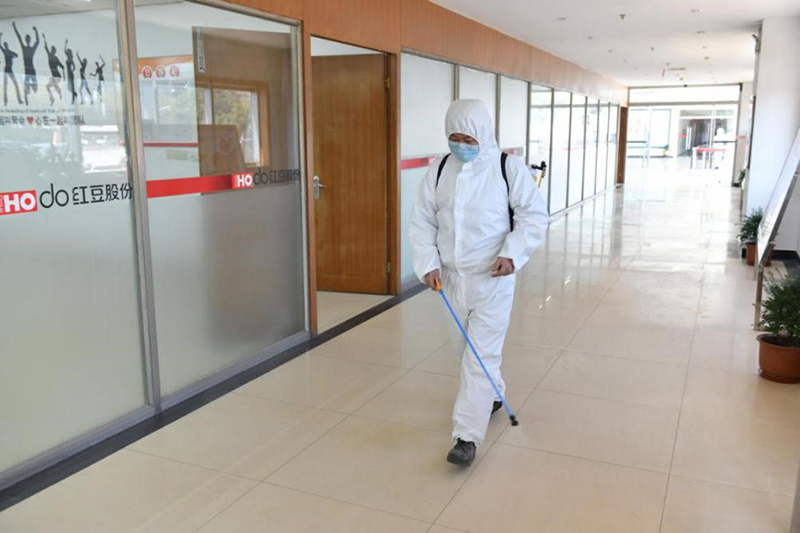 疫情期間,廠區(qū)的消毒任務(wù)是十分重要的。謝軍每天都背著噴霧器,不少于三次對(duì)工廠的各個(gè)角落進(jìn)行消毒。“每天背著這個(gè),感覺自己像是在給花澆水的園丁?!敝x軍開玩笑的說(shuō)。