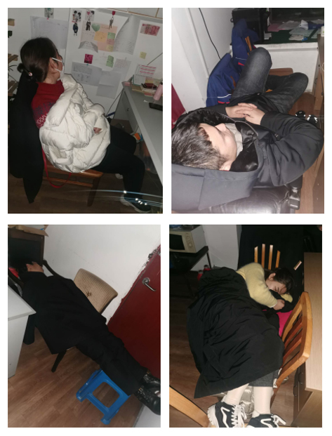 于是大家都開(kāi)始打電話(huà)回家。過(guò)一會(huì),到了小區(qū)封門(mén)的時(shí)間,雨還在一點(diǎn)一點(diǎn)的下。辦公室里沒(méi)被子,也沒(méi)更多保暖衣物,更不可能有床。幾個(gè)物業(yè)人你看看我,我看看你,女同志就緊挨在一起,靠在沙發(fā)上,閉上眼睛,能休息就休息一會(huì)兒!兩個(gè)男同志找來(lái)幾張凳子拼湊在一起,當(dāng)個(gè)簡(jiǎn)易床躺一會(huì)兒。半夜不舒服了,坐起來(lái)走一會(huì)兒,就這么著天開(kāi)始亮了。