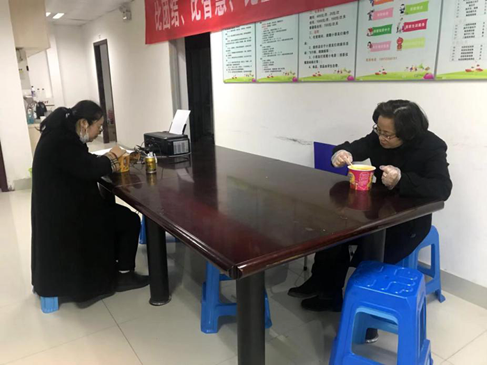 而在場(chǎng)的9名紅豆物業(yè)工作人員,都有些蒙,19天的抗疫工作以來(lái),還是首次遇到這種情況,現(xiàn)在情況未明大家該怎么辦?是否也要“自我隔離”?這時(shí)已有14年黨齡的紅豆萬(wàn)花城物業(yè)張麗萍經(jīng)理鎮(zhèn)定下來(lái),她讓大家冷靜,并立即咨詢(xún)醫(yī)院,得知兩小時(shí)后會(huì)出初步結(jié)果,就讓大家集中在一個(gè)辦公室,不要走動(dòng),手上工作盡可能用電話(huà)和信息的方式處理。