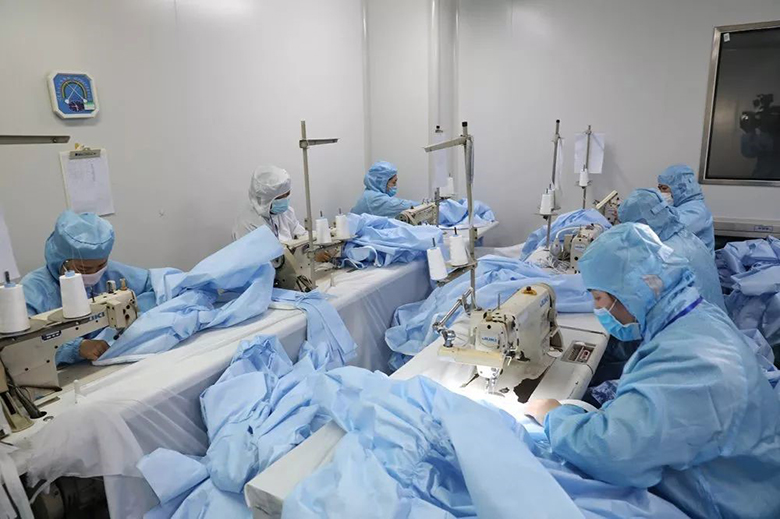 2月1日,紅豆連夜成立防護(hù)服項(xiàng)目指揮部,圍繞實(shí)施技術(shù)改造,快速形成有效產(chǎn)能,制定實(shí)施方案。2月3日17:15,紅豆首套民用防護(hù)服成功下線。2月7日13:30,在繼緊急改服裝生產(chǎn)線為防護(hù)服生產(chǎn)線后,紅豆旗下紅豆運(yùn)動(dòng)裝公司籌備的隔離衣項(xiàng)目首件下線。2 月 11 日,紅豆繼日夜突擊轉(zhuǎn)產(chǎn)防護(hù)服、隔離衣后,首批 10 萬只日常防護(hù)型口罩順利下線。2月10日晚,生產(chǎn)一線傳來令人激動(dòng)的消息,民用防護(hù)服日產(chǎn)超過3萬件。2月17日,紅豆醫(yī)用防護(hù)服獲批量產(chǎn)。2月24日,高速運(yùn)轉(zhuǎn)短短10天,紅豆集團(tuán)藥業(yè)公司醫(yī)用防護(hù)服車間擴(kuò)產(chǎn)改造項(xiàng)目正式交付。