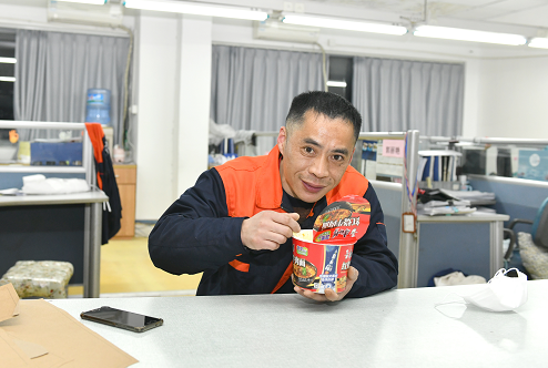 紅豆轉(zhuǎn)產(chǎn)防疫物資以來,吳曉東已記不清自己多少次凌晨回家,從春節(jié)假期返廠至今,一直堅守崗位已經(jīng)連續(xù)吃了一個多月的方便面,被同事們稱為“方便面”科長。