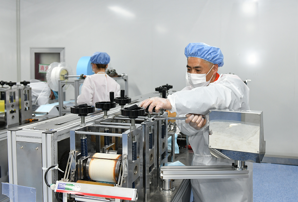 抗擊新冠疫情仍處于關鍵期,口罩作為一線醫(yī)護、企業(yè)復工、民眾出行的必備品,需求量仍暴增。3月3日凌晨3點,剛剛運送到紅豆口罩生產(chǎn)車間的兩套全自動口罩生產(chǎn)設備,在經(jīng)歷了幾小時的安裝、調(diào)試后,順利開工,保守預計日產(chǎn)可達10萬只??粗黄瑥娜詣涌谡謾C上飛速下來的潔凈口罩,“金牌”調(diào)試員、紅豆運動裝公司技術科科長吳曉東,也被同事戲稱為“方便面”科長的他長舒一口氣,揉了揉早已酸澀的雙眼,準備下班。