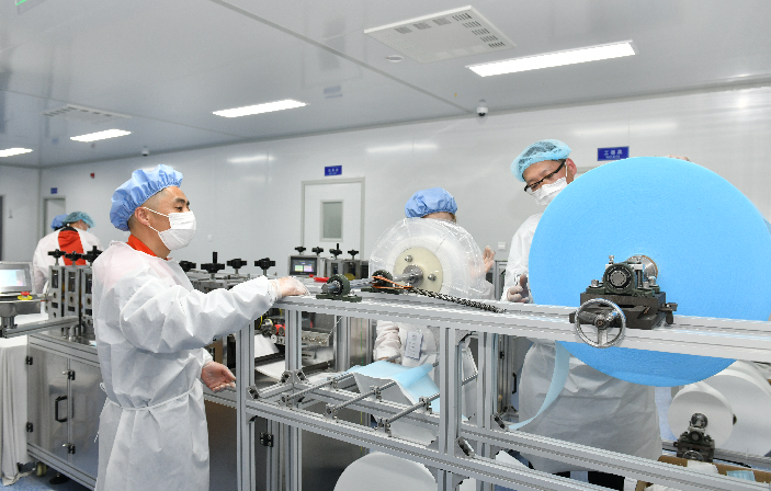 他說,剛開始心里也沒底,畢竟沒有搞過,在和小伙伴們一起研究、反復摸索后總算有了門道。吳曉東介紹,在半自動生產(chǎn)過程中,口罩面罩的生產(chǎn)由機器完成,再由人工熔接耳帶;全自動生產(chǎn)過程中,無紡布、熔噴布、鼻梁架、耳帶線等原材料只需放在對應位置上即可,不再需要其他工序。在這些過程中,機器的精確程度都影響著次品率。長途運輸、稍有不慎,一個螺絲的松動、一個刀口的裂紋都會影響口罩面罩的切縫、鼻梁架的位置偏移,而調(diào)試工作就是讓這些機器盡可能嚴絲合縫,從而發(fā)揮最大效能。同樣面對陌生的設備,吳曉東憑借自身學習經(jīng)驗和對機械的興趣與鉆研,不斷與新設備磨合,在一次次糾正和摸索中,屢屢找出最佳解決方案。口罩全自動生產(chǎn)過程中,一條生產(chǎn)線出現(xiàn)了切不斷面罩的問題,吳曉東第一時間趕到現(xiàn)場,認真校準、仔細判斷,直到發(fā)現(xiàn)問題出在一片刀片上,只需替換即可。診斷設備的吳曉東看著沉著冷靜,其實心里也沒底,全憑經(jīng)驗摸黑前行,他坦言,最擔心生產(chǎn)前后道跟不上,不能保證產(chǎn)能,只能一點一點試、一點一點調(diào),和時間賽跑,直到合格的面罩一片片從出口快速飛出、全部設備滿負荷生產(chǎn)。從剛開始的親自安裝調(diào)試,到后來指導技術人員安裝調(diào)試口罩生產(chǎn)線,吳曉東獲得了車間管理人員和工人的一致贊譽,成為技術大師傅。