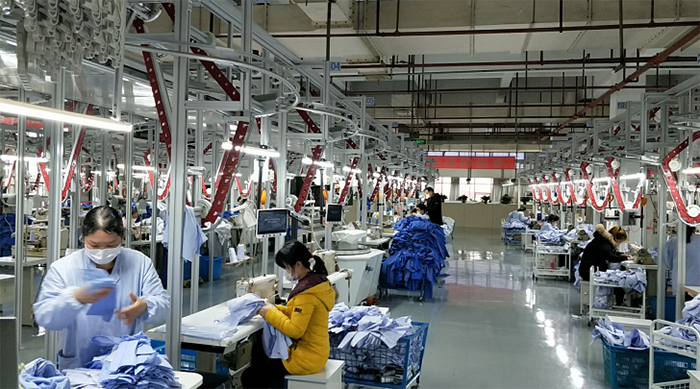 在協(xié)調(diào)好防護(hù)服生產(chǎn)的同時,徐亞東也在快速恢復(fù)他原來的本職工作。據(jù)他介紹,目前襯衫廠復(fù)工人員已經(jīng)達(dá)到230人,復(fù)工率恢復(fù)至85%,基本不會對生產(chǎn)造成影響。人員、機(jī)器就位,流水線正常運(yùn)轉(zhuǎn),在徐亞東的帶領(lǐng)下,襯衫廠已經(jīng)進(jìn)入全面復(fù)產(chǎn)狀態(tài),讓他感到欣慰的是,疫情沒有影響職工的工作熱情,工廠生產(chǎn)效率不降,質(zhì)量不減。