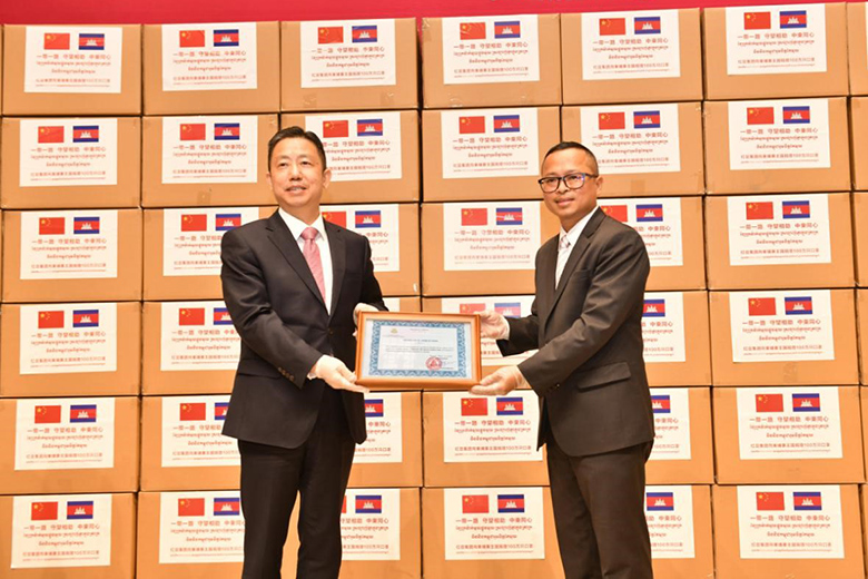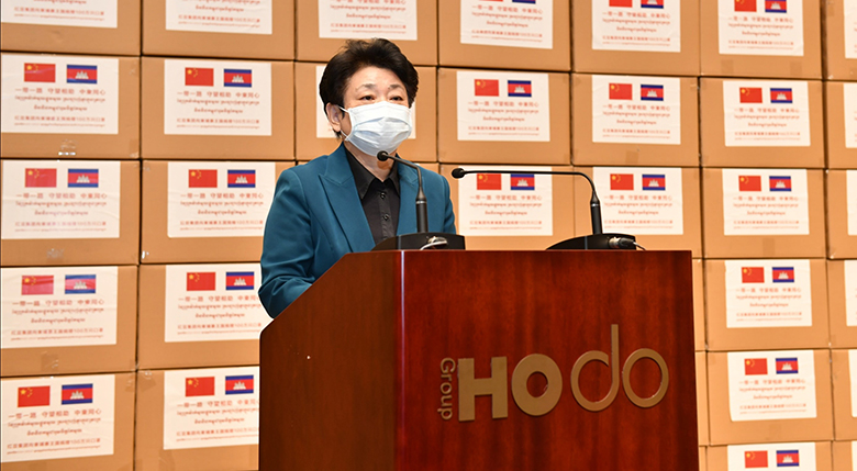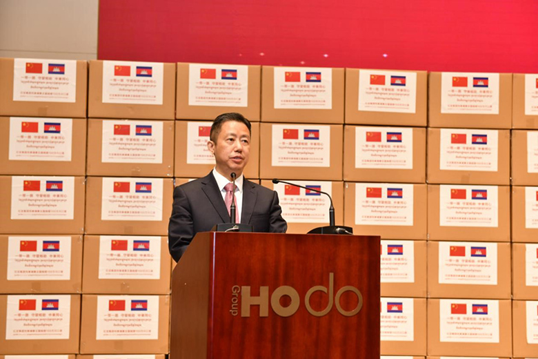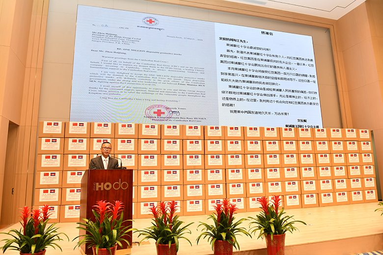 周海江在儀式上表示,在習(xí)近平總書記的親自指揮、親自部署下,我們舉國上下同心抗疫,經(jīng)過60多天的艱苦奮斗取得階段性勝利。而在中國抗疫斗爭初期最艱難時(shí)刻,洪森首相不顧危險(xiǎn),親赴北京,雪中送炭,支持中國抗疫,體現(xiàn)了危難之際中柬兩國的深厚兄弟情誼。多年來,在洪森首相的英明領(lǐng)導(dǎo)下,柬埔寨經(jīng)濟(jì)發(fā)展迅猛,現(xiàn)在柬埔寨疫情防控進(jìn)入攻堅(jiān)期,作為在柬投資的中國龍頭企業(yè),紅豆集團(tuán)用實(shí)際行動(dòng)誠摯表達(dá)中國人民對洪森首相英明領(lǐng)導(dǎo)的一份敬意。