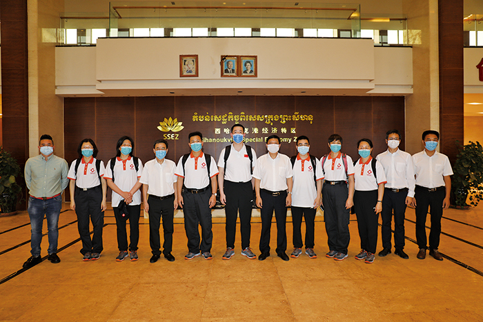 西港特區(qū)公司總經(jīng)理曹建江代表西哈努克港經(jīng)濟特區(qū)向?qū)<医M組長、中國廣西壯族自治區(qū)衛(wèi)生健康委員會保健局副局長艾翔一行表示熱烈歡迎,曹建江表示,感謝中柬政府和祖國人民對西哈努克港經(jīng)濟特區(qū)的特殊關(guān)懷,你們的到來使我們對防疫更加充滿了勝利的信心。在聽了曹建江簡要介紹西哈努克港經(jīng)濟特區(qū)的建設(shè)發(fā)展情況后,艾翔對特區(qū)十多年來的建設(shè)成果和為西哈努克省經(jīng)濟社會發(fā)展、解決人民就業(yè)以及深耕中柬友誼所作出的巨大貢獻及在西哈努克省舉足輕重的地位深表贊嘆。