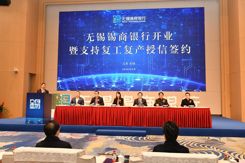 儀式現(xiàn)場,中國銀保監(jiān)會(huì)江蘇監(jiān)管局負(fù)責(zé)人宣讀《關(guān)于無錫錫商銀行股份有限公司開業(yè)的批復(fù)》,并頒發(fā)金融許可證。中國人民銀行南京分行負(fù)責(zé)人和無錫市市長杜小剛分別致辭。隨后,在與會(huì)領(lǐng)導(dǎo)共同見證下,無錫錫商銀行分別與江蘇銀行、興業(yè)銀行南京分行、國聯(lián)證券、神州數(shù)碼、華為江蘇、數(shù)美天下、明略科技、深度好奇等單位達(dá)成戰(zhàn)略合作意向。同時(shí),為全力支持企業(yè)復(fù)工復(fù)產(chǎn),無錫錫商銀行還與朝陽集團(tuán)、泰信機(jī)械、華精新材、大經(jīng)供應(yīng)鏈、中恒大耀等企業(yè)舉行授信簽約。