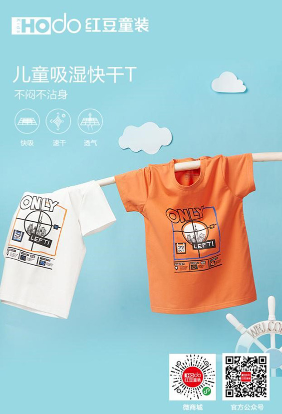夏天就要到了,大家都知道小孩子好動易出汗,非常容易受涼,因此紅豆童裝推出了快干T 。此款T恤在保持舒適性的同時,又在原有的棉成分中加入coolpass吸濕排汗聚酯纖維,這種面料能在大量出汗的情況下,利用內(nèi)部“十字”異形內(nèi)凹槽水槽及毛吸原理將水分排出,達到速吸快干的效果。這樣,孩子在出汗后,衣服都不會有粘貼皮膚產(chǎn)生的濕冷感。這是一款非常適合孩子夏季穿著的單品。成立于1994年的紅豆童裝堅持以“健康舒適”為產(chǎn)品理念,致力于打造出適合中國兒童的國民童裝。