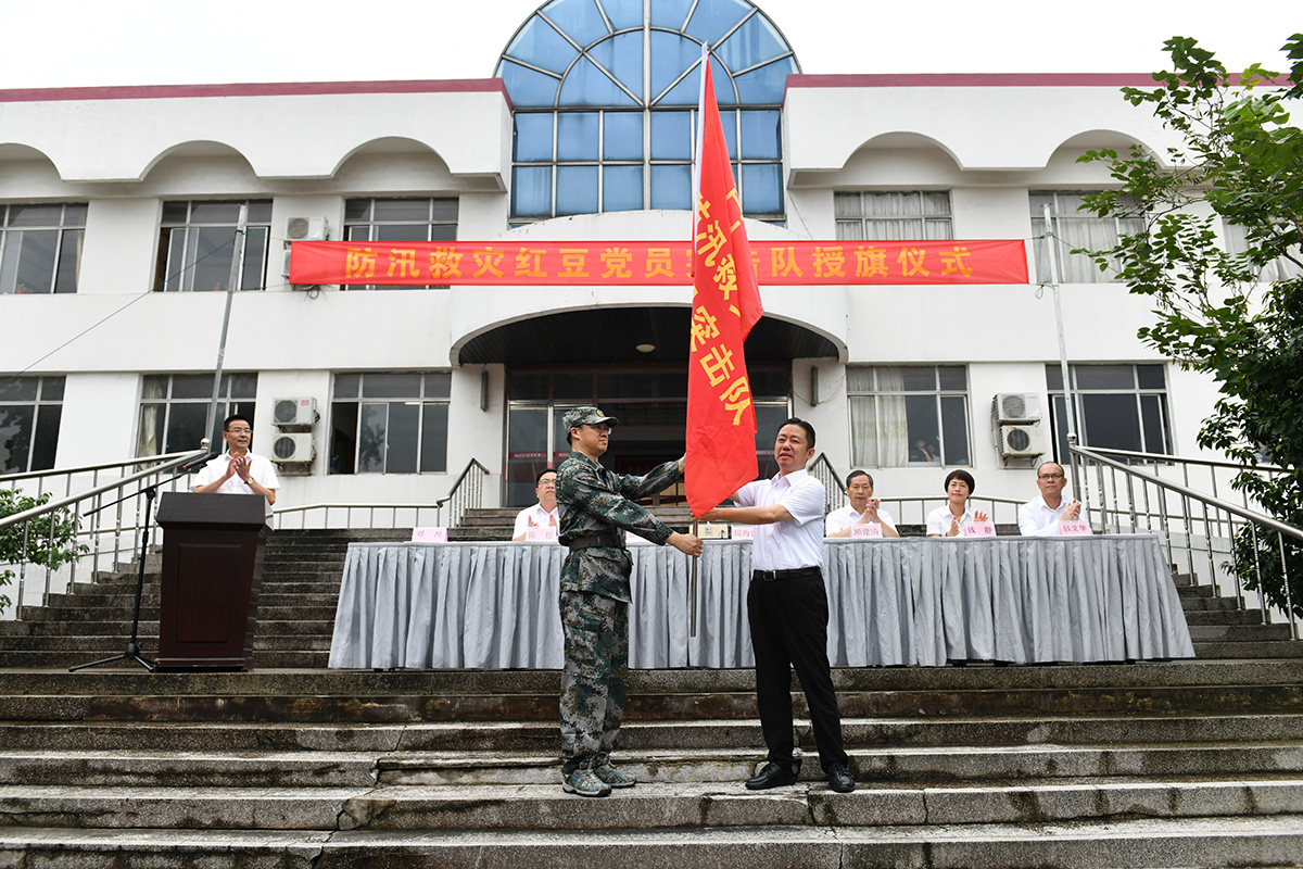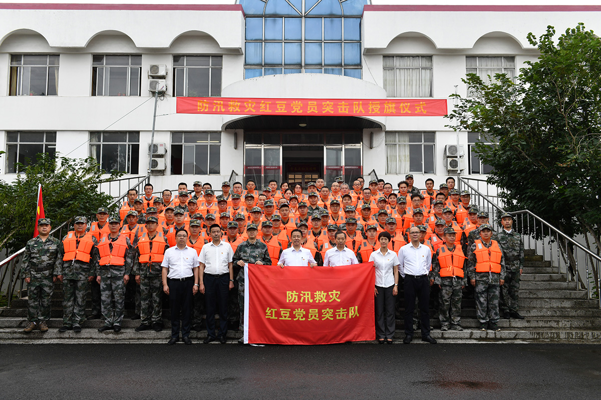 黨有號(hào)召,紅豆必應(yīng);國(guó)有需要,紅豆必有為。7月19日,紅豆黨委第一時(shí)間組織學(xué)習(xí)了中央組織部文件,并作出了成立防汛救災(zāi)黨員突擊隊(duì)的決定。7月20日,紅豆集團(tuán)人武部第一時(shí)間舉行防汛救災(zāi)黨員突擊隊(duì)授旗儀式,集團(tuán)黨委書記周海江向突擊隊(duì)授旗,100名黨員突擊隊(duì)向黨旗莊嚴(yán)宣誓。