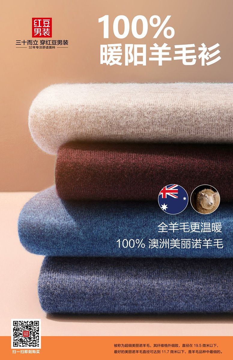 “三十而立,穿紅豆男裝”,打造中國男人的舒適專家,紅豆男裝從設計和制作的本源就在追求著品質和舒適,對生活、對穿著衣服的人都是如此。