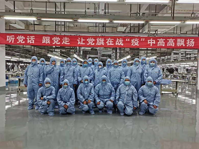 做大了的紅豆,不忘擔(dān)當(dāng)和使命。在這次抗疫中,紅豆集團(tuán)黨委書記、董事局主席周海江第一時(shí)間捐款1000萬(wàn)元個(gè)人特殊黨費(fèi),是全國(guó)第一個(gè)捐款一千萬(wàn)元特殊黨費(fèi)的民營(yíng)企業(yè)家。當(dāng)時(shí),戰(zhàn)疫前線隔離服、防護(hù)衣緊缺,了解到這一情況,周海江連夜成立“黨員突擊隊(duì)”,克服人員、原料、設(shè)備短缺等重重困難,夜日繼夜帶領(lǐng)大家改造生產(chǎn)線,轉(zhuǎn)產(chǎn)抗疫物資。為了最快速度購(gòu)買到設(shè)備,突擊隊(duì)員奔赴深圳,吃住在車上;當(dāng)時(shí)正值春節(jié)員工放假,生產(chǎn)線上的員工都回家,沒有人怎么生產(chǎn)?“我干過裁剪,我上!”“我干過縫紉機(jī),我上!”黨員干部紛紛請(qǐng)戰(zhàn),24小時(shí)不停工,連日連夜加班加點(diǎn)生產(chǎn)防護(hù)服隔離衣等緊缺的防疫物資。每天早晨七點(diǎn)鐘準(zhǔn)時(shí)發(fā)車,為前線送防疫物資。在2月份,疫情最緊張的時(shí)候,紅豆送到武漢前線65萬(wàn)件隔離衣。